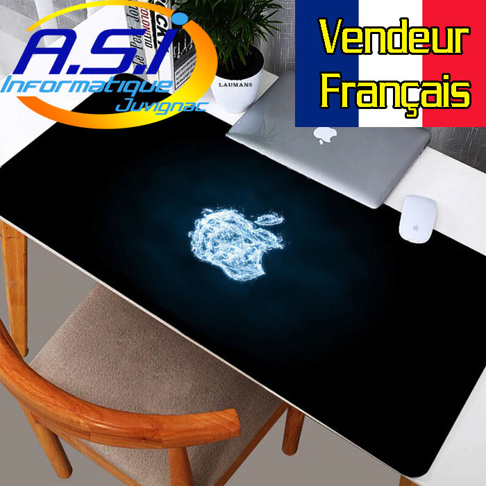 Tapis de souris Gaming Pomme XL Grand Format noir bleu gamer VENDEUR FRANCAIS